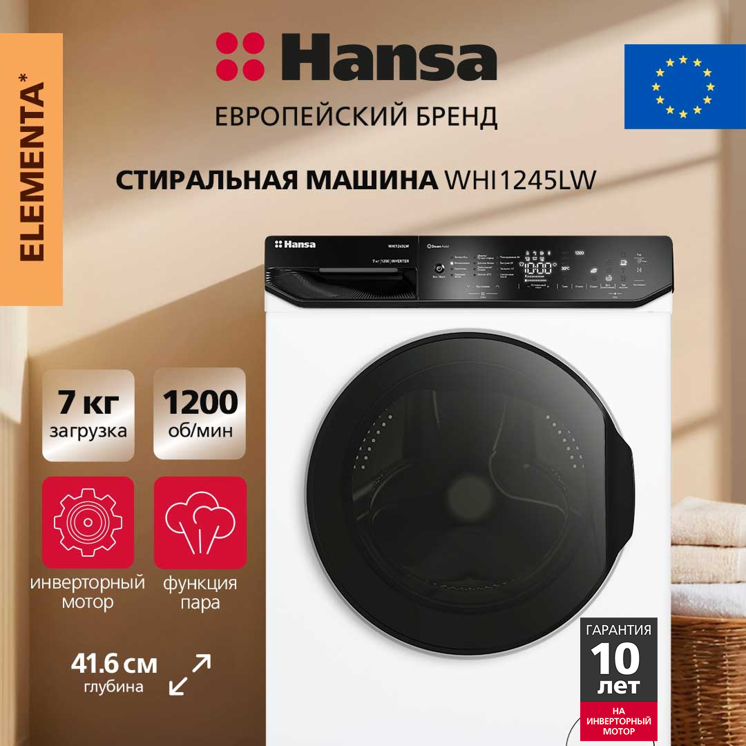 Отдельностоящая стиральная машина Hansa WHI1245LW сочетает современный дизайн и передовые технологии. Сенсорная панель управления с дисплеем делает выбор программ легким и интуитивно понятным. Инверторный мотор работает тихо и экономично, что подтверждает высший класс энергопотребления А+++. Двенадцать программ охватывают все типы тканей: от деликатной стирки до интенсивного режима для хлопка. Уникальная функция пара Steam Touch освежает вещи и бережно разглаживает складки, облегчая последующую глажку. Режим Турбостирки создан для слабозагрязненных вещей — он значительно сокращает время цикла и при этом экономно расходует электроэнергию.
